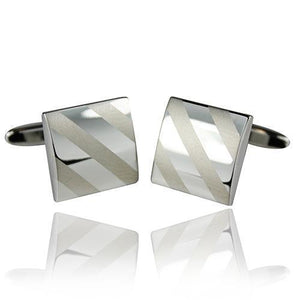 Transform your plain outfit from basic to debonair with these lasered diagonal stripe cufflinks.